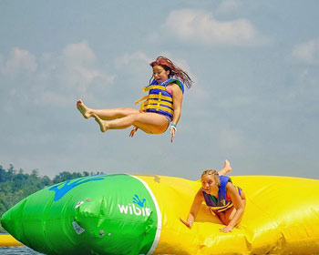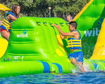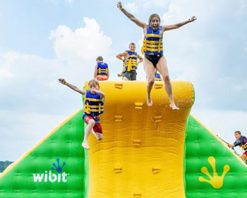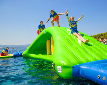 Dječji san ... prva i jedina modularna ljuljačka za napuhavanje na vodi u svijetu! Osjećajte se kao Tarzan i ljuljajte se s jedne platforme na drugu.