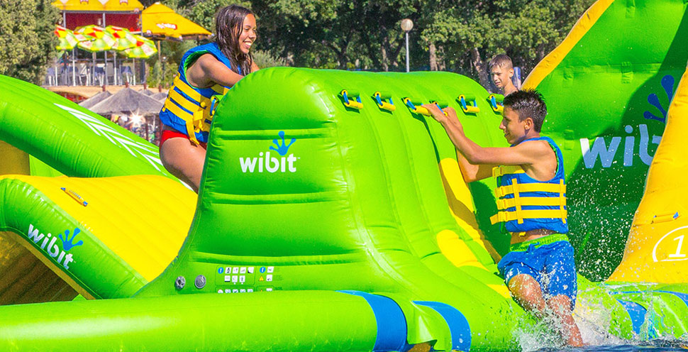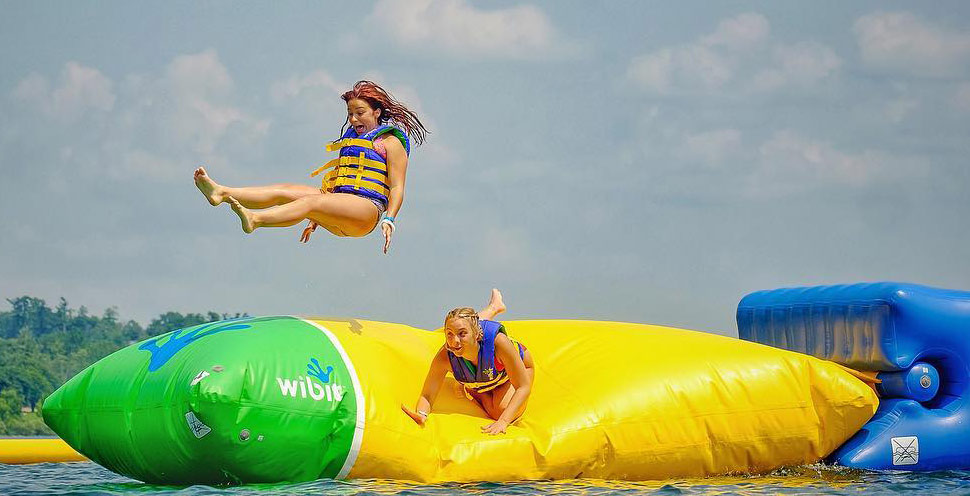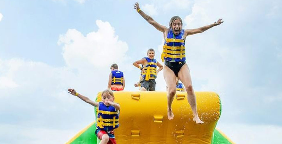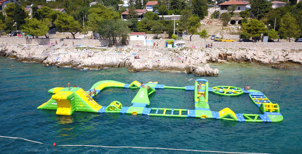 Dječji san ... prva i jedina modularna ljuljačka za napuhavanje na vodi u svijetu! Osjećajte se kao Tarzan i ljuljajte se s jedne platforme na drugu.